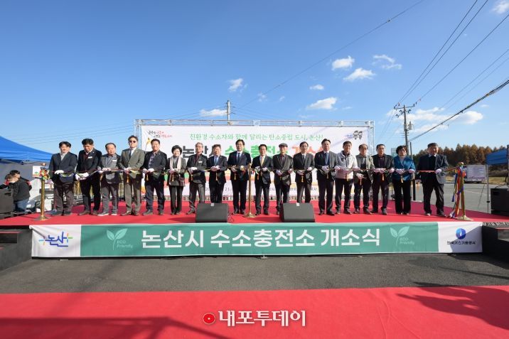시는 21일 부적면에서 백성현 논산시장을 비롯한 논산시와 충청남도 및 유관기관 관계자, 지역 주민 등 250명이 참석한 가운데 수소충전소 개소식을 열고 친환경 에너지 전환의 시작을 알렸다.