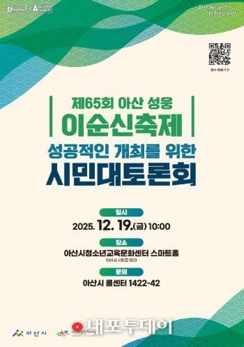 (내포투데이) (재)아산문화재단은 ‘'제65회 아산 성웅 이순신축제'의 성공적인 개최를 위한 시민 대토론회’를 오는 19일에 아산시청소년교육문화센터 스마트홀에서 연다.