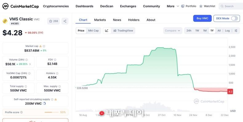 출금정지처분의 결정적 요인은 자체 발행한 VMC 코인이 불법매도된 사건이다. 2025년7월에 최초 미국 거래소인 Bitmart 에 상장한 VMC 는 상장가 $10을 시작으로 높은 상장 시작가임에도 불구하고 2개월만에 $600 대를 돌파했다. 사건이 터지기 11월4일 전까지는 $2,400 까지 넘어서는 놀라운 기록을 보였지만 결국 불법매도가 시작된 LBank 가 빅토리아 거래소를 금융당국에 신고하면서 현재는 상장가 미만으로 가격이 폭락하게 되는 희대의 사건으로 전락하고 말았다.
