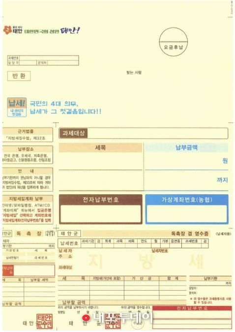(내포투데이) 태안군이 고령 친화 정책의 하나로 군민들이 지방세 체납고지서를 보다 쉽고 편리하게 이해할 수 있도록 새해부터 ‘큰 글씨 고지서’를 도입해 발송한다.