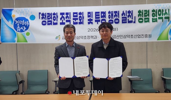 군 관계자는 “올해는 안전성 검사 기반의 유통 체계가 본격 시행되는 중요한 해인 만큼 진흥원과의 유기적인 협력이 무엇보다 중요하다”며 “오늘 협약한 청렴 정신을 바탕으로 금산인삼 산업의 투명성을 높일 수 있는 정책을 추진하겠다”고 말했다.