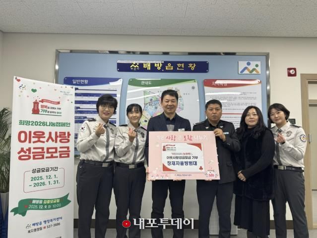 (내포투데이) 배방읍 장재자율방범대는 지난 15일 배방읍 행정복지센터에서 지역 내 어려운 이웃을 돕기 위한 ‘희망2026 나눔캠페인’에 동참해 성금 100만 원을 전달했다.