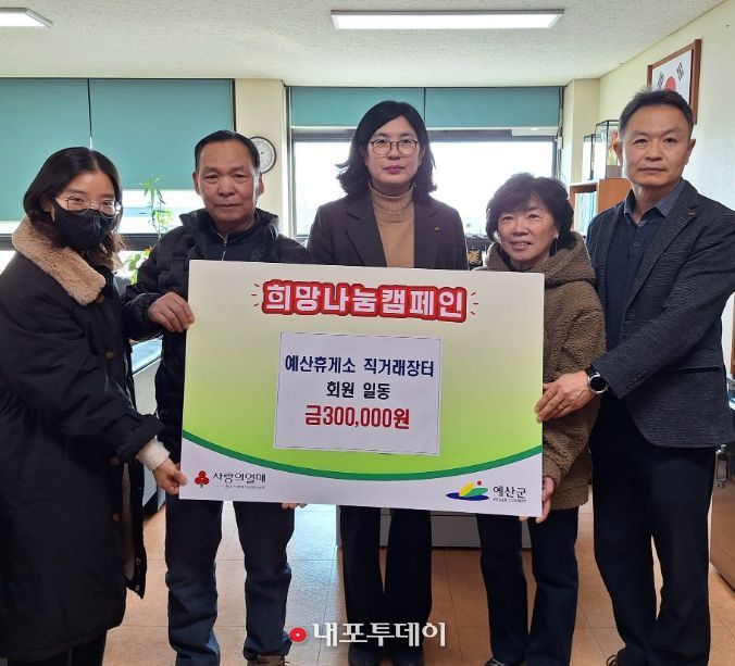 (내포투데이) 예산군은 예산휴게소 직거래장터 대신회 회원들이 지역사회 소외된 이웃을 돕기 위해 예산군에 ‘희망 2026 나눔 캠페인’ 성금 30만원을 기탁하며 따뜻한 나눔을 실천했다고 16일 밝혔다.