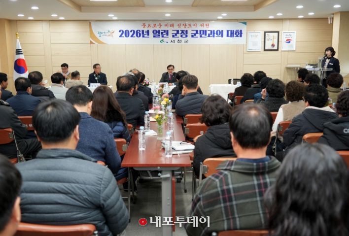 (내포투데이) 김기웅 서천군수가 13개 읍·면을 순회하며 진행한 ‘2026년 열린 군정 군민과의 대화’를 지난 20일 서천읍을 끝으로 성공적으로 마무리했다.