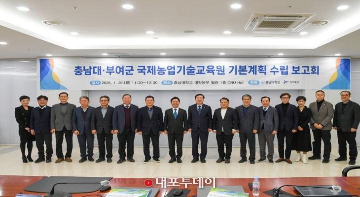 (내포투데이) 부여군은 지난 26일 충남대학교에서 박정현 부여군수와 김정겸 충남대 총장 등 관계자 28명이 참석한 가운데 ‘국제농업기술교육원 설립 기본계획 수립 최종 보고회’를 개최했다.