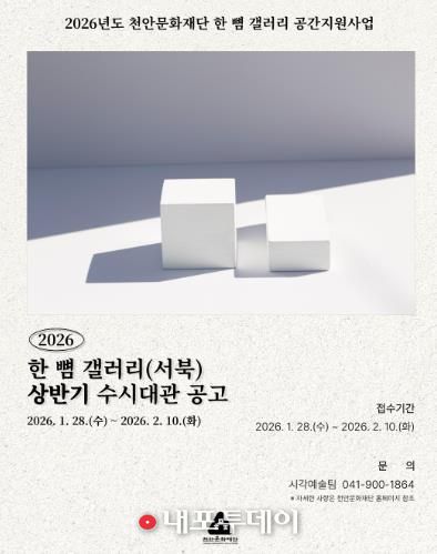 (내포투데이) (재)천안문화재단은 오는 28일부터 상반기 한 뼘 갤러리 수시대관 공모 접수를 받는다고 27일 밝혔다.