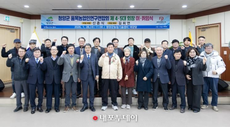 (내포투데이) 청양군은 지난 28일 농업기술센터에서 품목농업인연구연합회 회원 및 내빈 등 100여 명이 참석한 가운데 연합회장 이·취임식을 개최했다고 밝혔다.