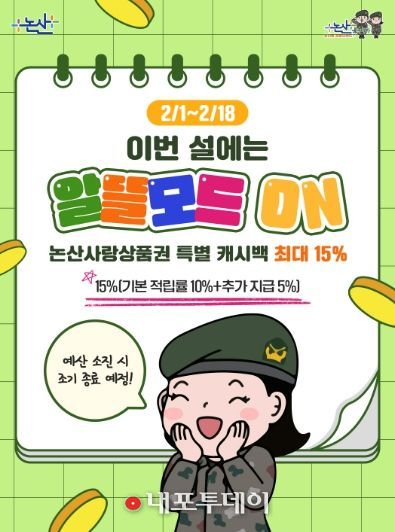 (내포투데이) 논산시가 설 명절을 맞아 지역 소비 활성화를 위해 ‘논산사랑상품권 특별 적립금(캐시백)’을 추진한다.