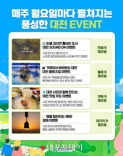 첫째 주 월요일에는 대전의 소리를 담은‘대전 SOUND ON’이벤트가 펼쳐진다.