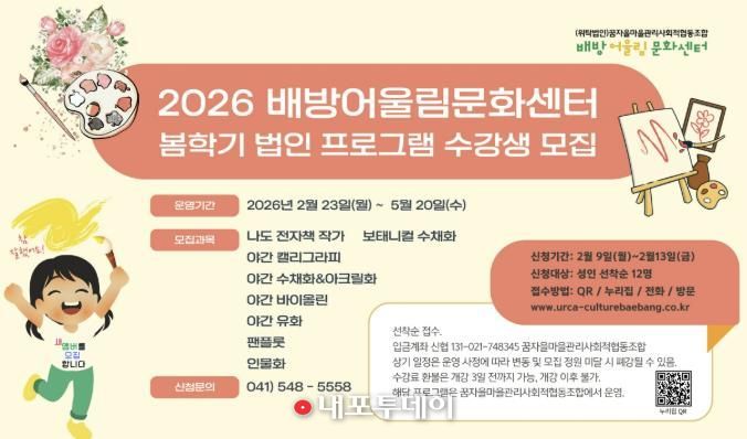 (내포투데이) 아산시는 배방어울림문화센터는 2026년 봄학기 생활·문화·예술 교육 프로그램 수강생을 모집한다고 밝혔다.