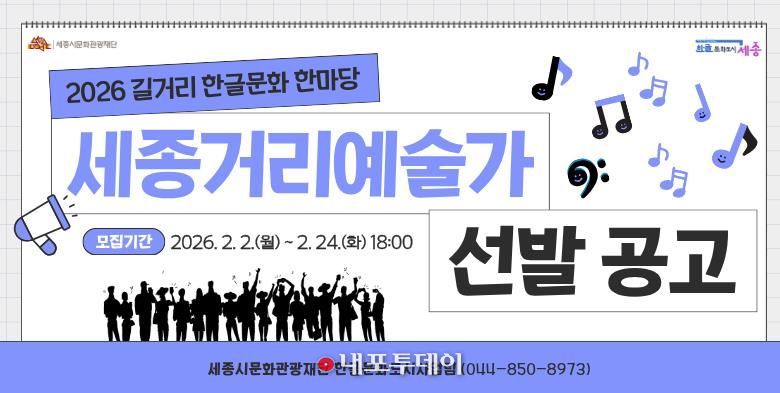 (내포투데이) 세종시문화관광재단은 '2026길거리 한글문화 한마당(舊 세종한글컬처로드)’에 참여할 세종거리예술가 25팀을 공개 모집한다.