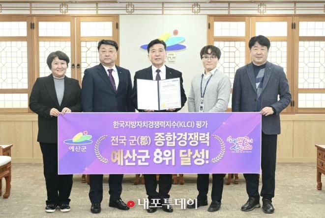 (내포투데이) 예산군은 (사)한국공공자치연구원이 발표한 ‘2025년 한국지방자치경쟁력지수(KLCI)’에서 군 단위 종합경쟁력 부문 508.1점을 기록하며 전국 82개 군 가운데 종합 8위를 차지했다고 밝혔다.