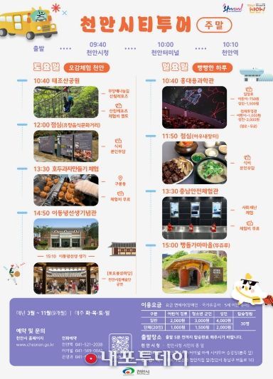 (내포투데이) 천안시가 3월부터 11월까지 ‘2026년 천안시티투어’를 본격적으로 운영한다고 9일 밝혔다.