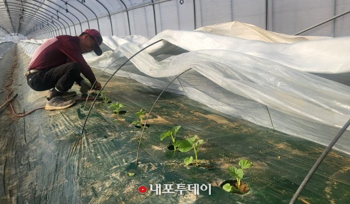 천안에서 20년이 넘게 멜론 농사를 지어온 베테랑 농업인 이필영(75)씨는 보통 재배보다 30여 일 빠르게 정식에 나섰다.