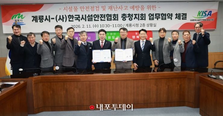 (내포투데이) 충남 계룡시는 11일 (사)한국시설안전협회 충청지회와 ‘계룡시 시설물 안전점검 및 재난사고 예방을 위한 업무협약’을 체결했다고 밝혔다.