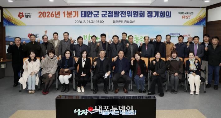 (내포투데이) 태안군이 지난 24일 군청 중회의실에서 ‘제3기 태안군 군정발전위원회 2026년 1분기 정기회의’를 열고 군정 핵심 현안과 주요 홍보 사항 등 16개 안건을 점검했다.