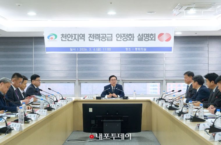 (내포투데이) 천안시는 6일 시청 중회의실에서 한국전력공사 대전세종충남본부와 함께 ‘천안지역 전력공급 안정화를 위한 설명회’를 개최하고 중장기 전력 인프라 확충 방안을 논의했다.