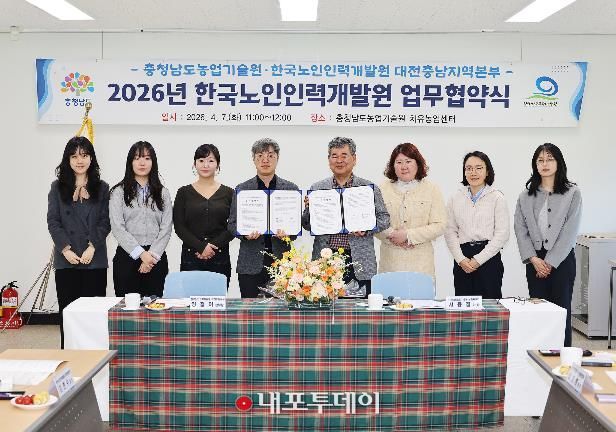 도 농업기술원은 7일 치유농업센터에서 한국노인인력개발원 대전충남지역본부와 ‘농촌자원 현장기반 노인적합형 신직무 활성화를 위한 업무협약’을 체결했다.