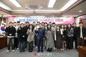 (내포투데이) 첨단 농업의 미래를 이끌 ‘논산 스마트팜’에 22명의 젊은 농업인들이 모였다. 논산시는 13일 시청 2층 상황실에서 논산 스마트팜 청년농업인과 간담회를 개최했다. 이번 간담회는 논산 스마트팜 단지에 관한 설명과 함께 청년농업인의 의견을 청취하기 위해 마련됐으며, 부적 딸기산업 스마트팜 단지 입주예정자와 청년자립형 스마트팜 지원사업 선정자 등 청년농업인들이 함께했다. 20~40대로 구성된 청년농업인들은 스마트농업 기술과 혁신적인 농업 경영을 통해 논산 농업의 미래를 주도할 것으로 기대되고 있다. 백성현 논산시장은 “스마트팜과 첨단농업 기술 도입을 통해 지역 농업의 경쟁력을 높이고 지속가능한 생산 체계를 구축해 나가는 것이 매우 중요하다”며 “여러분의 도전과 열정이 논산 농업의 미래를 밝히는 큰 힘이 될 것”이라고 말했다. 또한, “시에서도 청년농업인의 안정적 정착을 위해 주거 지원과 기술교육 등 종합적인 지원을 아끼지 않겠다”며 “함께 힘을 모아 스마트농업 기반의 고품질 원예 산업을 발전시키고, 청년 일자리 창출과 지역 인구 유입까지 이어지는 논산 농업의 새로운 미래를 만들