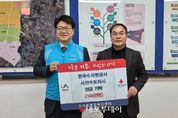 (내포투데이) 충남 서산시 수석동은 지난 9일 한국수자원공사 서산수도지사가 이웃돕기 성금 100만 원을 기탁했다고 밝혔다. 수석동은 이날 수석동 행정복지센터에서 차선준 수석동장, 박진철 한국수자원공사 서산수도지사장 등이 참석한 가운데 기탁식을 개최했다. 이번 성금은 설 명절 어려운 이웃을 돕기 위해 한국수자원공사 서산수도지사 직원들의 자발적인 모금으로 마련됐다. 수석동은 이번 성금이 관내 어려운 이웃을 돕는 데 활용될 수 있도록 충남사회복지공동모금회에 전달할 계획이다. 한편, 한국수자원공사 서산수도지사는 지난해부터 ‘물 나눔 행복 두 배 프로그램’을 추진, 관내 물 복지 취약계층 가구에 수도 요금을 지원했다. 또한, 매년 어려운 이웃을 돕기 위한 성금을 전달해 오고 있으며, 사랑의 김장 행사 등에 참여하는 등 지역사회의 한 일원으로서 다양한 사회공헌활동을 이어오고 있다. 박진철 한국수자원공사 서산수도지사장은 “어려운 이웃들이 따뜻한 설 명절을 보내길 바라며 직원 일동이 십시일반 이번 성금을 마련했다”라며 “한국수자원공사 서산수도지사는 앞으로도 어려운 이웃 돕기는 물론, 지역