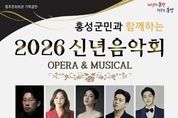(내포투데이) 홍성군 홍주문화회관은 내달 7일 오후 3시에 ‘홍성군민과 함께하는 2026 신년음악회’를 개최한다고 밝혔다. 이번 음악회는 병오년 새해를 맞아 오페라와 뮤지컬 넘버를 아우르는 다채로운 프로그램으로 관객들과 만날 예정이다. ‘2026 신년음악회’는 1부와 2부로 나누어 진행되며, 1부는 오페라의 유명 아리아와 듀엣 등 오페라 명장면들을 고전적인 아름다움과 강렬한 감동으로 선사하며, 2부는 대중의 사랑을 받아 온 뮤지컬 넘버들을 화려하고 섬세한 멜로디로 오페라와는 또 다른 감동으로 관객들에게 특별한 새해의 기운을 불어넣을 것이다. 티켓은 R석 2만원, S석 1만원이며, 15일(목) 오전 10시부터 홍주문화회관 누리집에서 예매 가능하다. 8세 이상 관람 가능하며 홍성군 다자녀가구는 50% 할인된 가격으로 관람할 수 있다. 이번 공연은 세밀하고 정교하며 강력한 카리스마로 오케스트라의 사운드를 아름답게 이끌어내는 것으로 잘 알려진 한주헌이 지휘봉을 잡아 한국을 대표하는 밀레니엄심포니오케스트라와 멋진 연주를 선보인다. 또, 세계적인 수준의 성악가로 한국은 물론 해외에서도 활발히 활동 중인 뛰어난 고 음역대와
