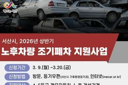 (내포투데이) 예산군은 미세먼지와 온실가스 감축을 통한 탄소중립 실현을 위해 총 10억 원의 예산을 투입해 노후경유차 479대에 대한 조기폐차를 지원한다. 조기폐차 지원 대상은 접수일 기준 사용본거지가 군에 6개월 이상 연속 등록된 배출가스 4·5등급 경유 자동차와 건설기계 소유자이며, 3월 10일부터 신청을 접수한다. 특히 5등급 차량(건설기계 제외)에 대한 보조사업은 올해를 끝으로 종료될 예정이며, 조기폐차 지원금은 차종과 연식에 따라 보험개발원이 산정한 해당 연도 1분기 차량 기준가액에 지원율을 적용해 산정된다. 3.5톤 미만 5등급 자동차의 지원금 상한액은 300만 원, 4등급 자동차의 상한액은 800만 원이다. 신청을 희망하는 경우 자동차 배출가스 종합전산시스템 누리집 또는 한국자동차환경협회에 등기우편으로 신청하면 되며, 조기폐차 대상 차량 온라인 검사는 누리집을 통해 신청할 수 있다. 자세한 사항은 군청 누리집 고시·공고에서 확인할 수 있으며, 기타 문의는 한국자동차환경협회(1577-7121)와 환경과 대기관리팀으로 하면 된다. 군 관계자는 “이번 조기폐차 사업이