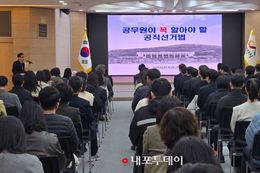 (내포투데이) 충남 계룡시는 3일 시청 1층 로비에서 전 직원을 대상으로'직원공감소통의 날'행사를 개최했다. 이번 행사는 ‘봄날의 울림, 마음을 잇다’를 주제로 직원 간 소통을 강화하고 조직 활력을 제고하기 위해 마련됐다. 공공기관 1회용품 등 사용 줄이기 실천 지침에 따라 전 직원은 개인 텀블러를 지참하여 커피를 나누는 등 탄소중립 실천과 자원 절약의 의미를 더했다. 이날 행사에서는 국악 앙상블 ‘너울’의 공연이 진행돼 전통의 선율 속에서 직원들이 함께 공감하고 화합하는 시간을 가졌다. 이어 시정 발전에 기여한 모범·우수·친절 직원에 대한 표창 수여가 이뤄졌다. 시 관계자는 “직원 한 사람 한 사람의 책임감과 헌신이 계룡시 행정의 기반”이라며 “앞으로도 직원들이 자부심을 갖고 근무할 수 있도록 존중과 소통의 조직문화를 조성해 나가겠다”고 밝혔다. 계룡시는 앞으로도 다양한 소통 프로그램을 통해 활력 있는 조직문화 정착과 함께 친환경 행정 실천을 지속적으로 추진해 나갈 계획이다.