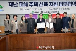 (내포투데이) 충남 계룡시는 5일 시청 상황실에서 충남건축사회 계룡지역회(회장 류욱형)와 ‘재난 피해 주택 신축지원을 위한 업무협약’을 체결했다고 밝혔다. 이날 협약식에는 이응우 계룡시장과 류욱형 회장을 비롯한 건축사회 관계자들이 참석해 재난 피해 시민의 주거 안정을 위해 상호 협력하기로 뜻을 모았다. 협약에 따라 충남건축사회 계룡지역회는 재난 피해 발생 시 주택 신축에 필요한 설계비와 감리비를 감면하고, 지역 건축사 인력풀을 활용한 기술 분야 재능기부를 통해 피해 주민의 신속한 복구를 지원할 예정이다. 시는 관련 인허가 서류를 우선 처리하는 등 행정 절차를 신속히 지원해 피해 시민들이 하루빨리 새로운 보금자리를 마련할 수 있도록 행정력을 집중하기로 했다. 아울러, 시는 재난 피해 주택이 발생한 경우 도시건축과 주택팀으로 문의해 줄 것을 당부했다. 양 기관은 이번 협약을 계기로 긴밀한 협조 체계를 구축하고, 재난 피해 시민의 경제적 부담 완화와 안정적인 정주 여건 조성에 공동으로 노력할 계획이다. 시 관계자는 “갑작스러운 재난으로 어려움을 겪는 시민들이 조속히 안정을 되찾을