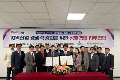 (내포투데이) 세종특별자치시가 5일 산학연클러스터지원센터에서 ㈔한국산업기술연구조합연합회(회장 김진우)와 지역산업 경쟁력 강화와 상호 협력을 위한 업무협약을 체결했다. ㈔한국산업기술연구조합연합회는 산업 분야별로 구성된 연구조합들의 연합체로, 산업 진흥·정책 연구·기업 지원 및 네트워크 구축 등 다양한 활동을 하고 있다. 이번 협약은 ㈔한국산업기술연구조합연합회가 이달 중 서울 서초구에서 세종 산학연클러스터지원센터로의 이전을 앞두고 지역 산업 경쟁력을 강화하는 상호 협력 일환으로 이뤄졌다. 협약에 따라 시와 연합회는 ▲유망기업·관련 단체 유치 및 이전 기업 정착 지원 ▲지역 신산업 육성을 위한 정부 연구개발(R&D) 과제 기획 및 국비 공모사업 공동대응 ▲지역인재 발굴 등에 협력한다. 특히 연합회는 세종 이전으로 중앙부처, 국책기관과의 접근성이 높아진 만큼 산업 정책 협력 기능을 강화하고 지역 기업과의 네트워크를 확대해 나갈 계획이다. 이승원 경제부시장은 “이번 협약은 수도권 소재 단체의 세종 이전을 계기로 지역 산업 생태계를 한 단계 도약시키는 출발점”이라며 “기업과 인재, 연구 역량이 함