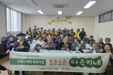 (내포투데이) 영인면행복키움추진단은 지난 5일 고독사 예방을 위해 독거어르신 80여 명을 대상으로 '반려식물(다육이) 꾸미기 및 나눔 프로그램'을 진행했다. 이번 행사는 ▲고독사 예방 사업 취지 설명 ▲다육이 꾸미기 프로그램 ▲간담회 순으로 진행됐으며, 추후 어르신 다육이 전시회도 개최할 계획이다. 어르신들은 직접 반려화분을 꾸미고 이웃과 소통하는 시간을 통해 성취감을 느끼고 자연스러운 인적 네트워크를 형성했으며, 전시회를 통해 지역사회 돌봄 체계를 더욱 공고히 할 계획이다. 프로그램에 참여한 한 어르신은 "오랜만에 나와 바깥공기도 마시고 사람들도 만나서 너무 행복했다"며 "전시회까지 할 수 있어서 너무 기대된다"고 말했다. 김정자 단장은 "작고 귀여운 다육이를 직접 만지고 꾸미는 과정이 어르신들에게 정서적 위안이 되길 바란다"며 "앞으로도 도움이 필요한 주민을 찾는 데 더욱 노력하겠다"고 전했다. 김은경 면장은 "고독사 예방은 이웃에 대한 작은 관심에서부터 시작된다"며 "이번 사업으로 형성된 네트워크가 어르신들의 고립감을 해소하는 든든한 울타리가 되길 바라며, 현장 중심의 복지 행정에