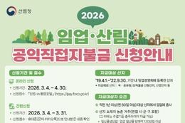 (내포투데이) 당진시는 오는 30일까지 2026년 임업·산림 공익직접지불금 신청을 받는다고 9일 밝혔다. 임업직불제는 산림의 공익적 기능을 높이고 임업인의 소득 안정을 돕기 위해 마련된 제도로, 지급 대상 산지에서 대추·호두·밤 등 임산물을 생산하거나 나무를 심고 가꾸는 육림업에 종사하는 임업인에게 직불금을 지원한다. 신청 대상은 2019년 4월 1일부터 2022년 9월 30일까지 임야 대상 농업경영체로 등록을 마친 산지에서 직전 1년 이상 계속해 연간 60일 이상 임업에 종사하는 등 일정한 자격 요건을 갖추고 의무 사항을 이행한 임업인이다. 자격 요건을 충족하면 임산물 생산업 소규모 임가의 경우 임가당 130만 원을 지급한다. 임산물 생산업 면적 직불금과 육림업 직불금은 기준 면적 구간별로 차등 단가를 적용해 지급한다. 특히 올해부터는 직전 연도 소규모 농업 직불금 수령자도 임산물 생산업 직불금 신청이 가능해졌다. 이에 따라 해당 연도에 소규모 농가 직불금과 임산물 생산업 직불금 가운데 하나를 선택해 신청할 수 있다. 신청은 4월 30일까지 산지 소재지 관할 읍면동 행정복지센터를 방문