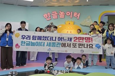 (내포투데이) (재)세종시문화관광재단은 조치원읍 세종문화예술회관 내 어린이 한글 체험공간 한글놀이터 세종관의 누적 관람객이 4월 4일 기준 2만명을 돌파했다고 밝혔다. 한글놀이터 세종관은 국립한글박물관 및 세종특별자치시와 협력하여 조성된 체험형 한글 교육·문화 공간으로, 개관 4개월 만에 관람객 2만 명을 유치하며 중부권을 대표하는 어린이 한글 체험 공간으로 자리매김하고 있다. 재단은 누적 방문객 2만 명 달성을 기념해, 온 가족이 즐길 수 있는 체험 프로그램을 선보인다. 4월 15일부터 5월 8일까지 진행되는 ‘한글요정 말깨비와 떠나는 탐험대’는, 어린이들이 주인공이 되어 전시장 곳곳을 탐험하며 자연스럽게 한글과 친해질 수 있는 놀이형 교육 프로그램이다. 1일 3회씩 매주 수요일과 금요일, 어린이날에 운영되며, 회차별로 50명까지 네이버 예약을 통해 선착순으로 신청가능하다. 방문객 참여형 사진 이벤트 ‘찰칵! 한글놀이터의 주인공’도 함께 운영한다. 방문 당일 촬영한 기념사진을 공간 내에 2개월간 전시한 후, 전시 종료 이후 해당 사진을 제공하는 프로그램으로 관람객 누구나 참여할 수 있다. 양유정