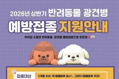 (내포투데이) 세종특별자치시가 오는 13일부터 26일까지 2주간 봄철 반려동물의 야외활동 증가에 대비해 ‘광견병 예방접종’을 무료로 지원한다. 광견병은 감염된 반려동물로부터 사람에게도 전염될 수 있는 치명적인 인수공통전염병으로, 야생동물과의 접촉을 통해 주로 전파된다. 때문에 반려동물을 기르는 가정에서는 매년 1회 정기적으로 광견병 예방백신을 접종하는 것이 중요하다. 다만, 지난해 하반기에 접종을 마친 반려동물은 올 상반기에는 재접종하지 않아도 된다. 예방접종 대상은 3개월령 이상의 개와 고양이로, 총 2,360여 마리 분량의 백신이 무료로 지원된다. 선착순 소진 시에는 무료 접종 사업이 조기에 종료될 수 있다. 개의 경우 동물등록이 되어 있어야 무료로 접종할 수 있고, 미등록된 개는 당일 동물등록 후 접종하면 된다. 임신 또는 이상 소견이 있으면 접종이 불가능하므로 사전에 수의사와 충분히 상담해야 한다. 동·읍 지역은 14곳의 협력 동물병원에서 접종이 가능하고, 면 지역은 신청 시 전담 공수의를 통해 출장 접종을 받을 수 있다. 이번