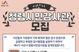 (내포투데이) 충남 서산시가 공정하고 투명한 감사행정 실현과 시민의 시정 참여 기회를 확대하기 위해 제4기 청렴시민감사관을 공개 모집한다고 밝혔다. 청렴시민감사관은 시에서 실시하는 감사 참여, 주요 지역 현안 사업의 문제점 및 개선 의견 제시 등 다양한 역할을 맡는다. 모집 대상은 회계·건축·토목·환경·사회복지·정보통신·전기 등 관련 분야 자격증 소지자, 기술사이거나 지역사회·단체에서 활발히 활동 중인 시민이다. 또한, 부패 척결에 대한 사명감과 정의감이 투철하거나, 행정에 대한 식견이 풍부한 시민을 대상으로 한다. 지원 희망자는 서산시에 2년 이상 주민등록이 되어 있어야 한다. 모집 기간은 4월 27일까지며, 서산시 감사담당관 방문·등기우편·이메일 등의 방법으로 신청하면 된다. 시는 모집 마감 후 5월 중 청렴시민감사관을 선정할 계획이며, 선정된 청렴시민감사관은 오는 2026년 5월 18일부터 2028년 5월 17일까지 2년간 역할을 수행하게 된다. 이완섭 서산시장은 “청렴시민감사관 제도를 통해 시민과 함께하는 투명한 행정을 구현하고자 한다”라며 “지역사회 발