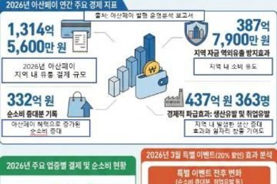 (내포투데이) 아산시는 중동 위기 대응을 위해 추진한 아산페이 20% 할인 정책이 시민들의 높은 호응 속에 당초 계획보다 닷새 빠른 10일 오후 1시께 조기 종료됐다고 밝혔다. 이번 조기 종료는 정책 효과가 단기간에 집중되며 시민 이용이 크게 늘어난 데 따른 것이다. 실제로 할인 기간 결제 규모와 소비 증가가 빠르게 확대되면서 지역경제에 미치는 효과도 뚜렷하게 나타난 것으로 분석됐다. 아산시 의뢰로 진행된 ‘아산페이 발행·운영 분석’ 자료에 따르면, 2026년 3월 1일부터 15일까지와 할인 적용 이후인 3월 16일부터 31일까지를 비교한 결과, 아산페이 결제액은 236억 원에서 439억 원으로 증가했다. 순소비 증대분은 56억 원에서 104억 원으로 약 86% 확대됐다. 같은 기간 생산유발효과는 78억 원에서 146억 원으로, 취업유발효과는 66명에서 122명으로 늘었으며, 역외유출 방지효과 역시 69억 원에서 129억 원으로 증가했다. 할인 정책이 소비 확대를 넘어 생산과 고용, 지역 내 자금 순환까지 동시에 견인한 것이다. 이 같은 단기 성과는 누적 분석에