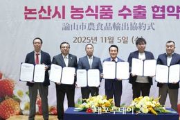 (내포투데이) 논산시가 일본 오사카 현지 대형 유통업체들과 손잡고 논산 농식품의 일본 시장 진출 확대에 나섰다. 논산시(시장 백성현)는 5일 일본 오사카 호텔 로얄클래식 연회장에서 현지 유통 전문기업 6개 사와 수출 협력 강화를 위한 업무협약을 체결했다. 이번 협약을 통해 양측은 △우수 신선 농산물 및 가공식품 교류·수출 협력 △일본 시장 내 안정적 판로 구축 및 지속적 교류 강화 등 협력체계 구축에 뜻을 모았다. 협약서에는 백성현 논산시장이 일본 현지 유통업체 대표들과 함께 서명하며, 논산 농식품의 수출 확대를 위한 상호 협력 의지를 확인했다. 협약식에는 ㈜모모디즈, ㈜나나츠보시, ㈜플랫푸드, ㈜세이코부츠류, JN글로벌, ㈜이탈리안푸드 등 오사카 지역 식자재 및 유통 전문 기업이 참여했다. 협약 규모는 총 70만 달러(약 10억 원)이며, 주요 품목은 논산의 대표 수출품인 딸기, 냉동딸기, 젓갈, 쌀, 참기름, 고추장 등이다. 논산시는 이번 협약을 통해 일본 현지 유통망과의 협력 기반을 강화함으로써, 지역 농가의 수출 활성화와 논산 농식품의 브랜드 인지도 제고에 새로운 전