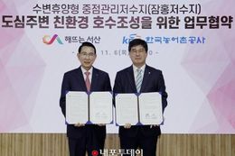 (내포투데이) 충남 서산시는 도심주변 친환경호수 조성사업의 원활한 추진을 위해 한국농어촌공사 서산·태안지사와 업무협약을 체결했다고 밝혔다. 업무협약식은 지난 6일 시청 시장실에서 이완섭 서산시장, 김학배 한국농어촌공사 서산·태안지사장 등이 참석한 가운데 열렸다. 도심 주변 친환경호수 조성사업은 잠홍저수지의 수질개선을 위해 수질정화시설과 생태습지, 데크길과 광장 등을 조성하는 사업이다. 잠홍저수지의 수면 관리자는 한국농어촌공사 서산·태안지사로, 업무협약을 통해 잠홍저수지의 수질개선 대책 추진을 위한 협력 체계를 구축하기 위해 마련됐다. 협약서에는 사업 추진을 위한 서산시의 토지 사용, 향후 조성될 수질정화시설과 생태습지 등의 유지·관리에 대한 사항이 담겼다. 시는 오는 2027년 준공을 목표로 내년부터 하루 1만 톤 규모의 물을 정화할 수 있는 수질정화시설, 2만㎡의 생태습지 등을 조성해 나갈 방침이다. 이완섭 서산시장은 “한국농어촌공사 서산·태안지사와의 원활한 협력을 통해 잠홍저수지의 수질을 개선하고 명품 호수로 재탄생할 수 있도록 사업의 추진에 최선을 다하겠다”라고 말했다