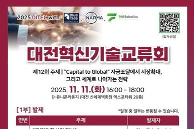 (내포투데이) 대전시는 오는 11월 12일, 대전신세계 엑스포타워 20층 D-유니콘라운지에서 올해 열여섯 번째‘대전혁신기술교류회(DITEC)’를 개최한다. 이번 교류회는 ‘스타트업의 자본조달 전략과 기업공개(IPO)’라는 주제로 투자자와 기술특례 평가기관, 실제 기업상장을 진행하는 기업에서 각각 발제한다. 먼저 시너지파트너스DH 최덕호 대표가 투자자 입장에서 ‘초기투자에서 IPO로의 성장전략’을 소개한다. 이어서 한국거래소 지정 기술특례 전문 평가기관인 한국보건산업진흥원의 변정훈 책임연구원이 ‘바이오벤처 기술특례 상장에서 바라보는 기업전략’에 대해 발표한다. 다음으로 현재 코스닥 예비상장심사를 마치고 2025년 1월 코스닥 상장 예정인 에르코스의 윤홍근 이사가 ‘기업의 가치평가로 보는 미래 전략’이라는 주제로 현장에서 기업공개를 준비하고 진행하면서 느낀 점과 전략에 대해 공유한다. 주제 발표 후에는 한국과학기술지주 윤기동 본부장의 진행으로 발표자와 참석자 간 질의응답과 교류 세션을 진행한다. 김종민 대전시 기업지원국장은“기업 성장 단계에 알맞은 투자유치 전략을 펼치는 것이
