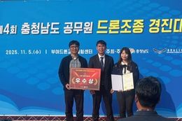 (내포투데이) 천안시는 제4회 충청남도 공무원 드론조종 경진대회에서 수색·탐색분야 최우수상을 받았다고 7일 밝혔다. 충청남도 주관으로 열린 이번 대회에는 도내 15개 시군 공무원 37여 명이 참여해 정밀조종과 수색·탐색 분야에서 실력을 겨뤘다. 천안시에서는 토지정보과 공간드론팀 이상열·박성열·현창진 주무관이 참가해 실제 행정 현장에서 쌓아온 다양한 비행 경험과 임무 수행 능력을 바탕으로 수색·탐색부문 최우수상을 받는 쾌거를 달성했다. 이번 수상으로 천안시는 드론을 활용한 현장 중심 행정 실행력과 전문성을 인정받았다. 천안시는 연간 100건 이상 드론을 활용한 행정 지원을 수행하고 있으며, 축적된 운영 경험을 바탕으로 공공 드론 활용을 지속 확대하고 있다. 김종범 토지정보과장은 “직원들이 다양한 현장에서 쌓아온 경험과 꾸준한 노력이 이번 성과에 큰 힘이 된 것 같다”며 “앞으로도 천안시가 드론 기반 행정에서 앞서갈 수 있도록 지속적으로 역량을 강화하겠다”고 말했다.