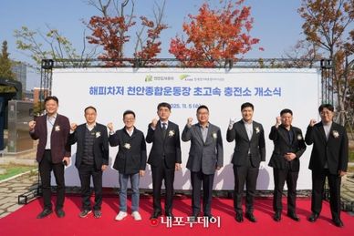 (내포투데이) 천안도시공사는 ‘해피차저 천안종합운동장 초고속 충전소 개소식’을 개최했다고 7일 밝혔다. 공사는 지난해 4월 한국전기차충전서비스㈜와 친환경 교통수단 보급 확대와 시민 편의 증진을 위한 협약을 체결하고, 약 18개월에 걸쳐 종합운동장, 한들문화센터, 태조산공원 등 11곳에 전기차 충전기 총 59기를 구축했다. 이날 개소식에는 신광호 천안도시공사장과 박한수 한국전기차충전서비스 대표 등이 참석해 전기차 충전기 구축을 완료한 성과를 기념했다. 전기차 충전기 구축 완료로 시민들의 생활 편의가 향상될 것으로 기대하고 있다. 신광호 천안도시공사장은 “이번 전기차 충전 개소를 통해 시민들이 편리하게 전기차를 충전할 수 있는 환경을 마련하게 됐다”며 “앞으로도 지속적인 관리와 안내를 통해 시민 친화적인 친환경 교통 인프라를 확대해 나갈 것”이라고 말했다.