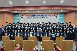 (내포투데이) 시민이 배우고 성장하는 평생학습의 장인 ‘행복문화대학’이 올해 과정을 성공적으로 마무리했다. 논산시는 6일 건양대학교 명곡정보관에서 ‘2025 행복문화대학’ 수료식을 열고 3개월간 배움 여정을 함께한 수료생 91명을 축하했다. 올해 행복문화대학은 논산시가 지원하고 건양대학교 평생교육원이 주관해 지난 8월부터 3개월간 운영됐다. 수료식에는 김영관 논산시 부시장과 홍영기 건양대학교 대외협력부총장 등 내빈과 수료생들이 참석해 배움의 성과를 함께 축하했다. 이날 행사는 행복대학 마지막 과정인 ‘건강과 행복을 부르는 생활 속 인테리어 풍수지리’ 강연에 이어 진행됐다. 총 114명의 수강생 중 10회 강의를 모두 이수한 91명이 수료증을 받았으며, 수료생 대표 강경숙 씨는 ‘훌륭한 배움의 기회를 만들어 주신 논산시와 건양대에 깊이 감사드린다’고 소감을 전했다. 행복문화대학은 2012년 ‘여성자치대학’으로 처음 문을 열고 시민들의 인문학적 소양 향상에 기여헸다. 이후 2023년부터 ‘행복문화대학’으로 이름을 바꾸고 성별 구분 없이 누구나 참여할 수 있는 평생교육 프로그램으로 확대·개편하며 인문학·