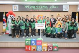 (내포투데이) 청양군이 지역 취약계층을 위한 따뜻한 기부 문화를 확산하기 위해 ‘희망2026 나눔캠페인’ 순회모금 행사에 본격적으로 나섰다. 지난 11일 개최된 이번 행사는 충남사회복지공동모금회(회장 성우종)가 주관하는 행사로 김돈곤 군수를 비롯해 충남사회복지공동모금회장, 기관·단체장, 지역기업 및 주민 등 150여 명이 참석한 가운데 따뜻한 겨울나기를 위한 나눔의 의미를 함께 나누는 자리로 진행됐다. 행사는 신기농장의 신기민 대표가 1,000만원을 기탁하며 시작됐으며, ㈜동방, 정산감리교회, 농업회사법인 한울, 청양군 기독교연합회, (사)청양군새마을회 등 지역 단체와 기업들이 지속적인 기부를 이어가며 청양군의 나눔 정신을 실천했다. 또한, 2017년부터 정기적으로 기부를 이어온 장평면 정일용씨도 성금을 기탁하며 의미를 더했다. 성우종 사회복지공동모금회장은 “청양군은 매년 연말이면 군민 모두가 힘을 모아 따뜻한 나눔의 문화를 만들어가는 지역”이라며 “오늘 함께해주신 모든 기부자 여러분의 정성이 어려운 이웃들에게 큰 희망이 될 것이며, 공동모금회도 책임있는 배분과 지원으로 그 마음에 보답하겠다”고 감