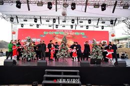 (내포투데이) 달콤한 곶감의 맛과 미리 만나는 크리스마스의 설렘이 어우러진 ‘2025 논산양촌곶감축제’가 12일부터 14일까지 3일의 겨울 여행을 마치고 성황리에 막을 내렸다. 논산시는 지난 12일부터 14일까지 양촌면 양촌리 체육공원 일원에서 열린 이번 축제에 13만여 명의 방문객이 다녀가며, 겨울을 대표하는 이색 축제로서의 명성을 재확인했다고 밝혔다. 축제의 첫날인 12일에는 ‘크리스마스’와 ‘곶감’을 결합한 이색적인 콘텐츠가 관람객들의 눈길을 사로잡았다. 곶감으로 장식된 대형 크리스마스트리가 점등되며 축제의 시작을 알렸고, 대표 인기 프로그램인 ‘모락모락 바비큐 존’은 장작불에 메추리와 떡갈비, 밤을 굽는 냄새로 방문객들의 발길을 이끌었다. 2일 차인 13일에는 비가 내리는 궂은 날씨가 이어졌지만, 축제의 열기는 식을 줄 몰랐다. 주무대에선 관람객들이 빗속에서도 춤추고 호응하며 낭만적인 ‘빗속 축제’를 즐기는 진풍경을 연출했다. 마지막 날인 14일에는 다시 맑게 갠 날씨 속에서 축제가 활기를 되찾았다. 곶감 판매장과 크리스마스 마켓, 각종 체험 공간 앞에는