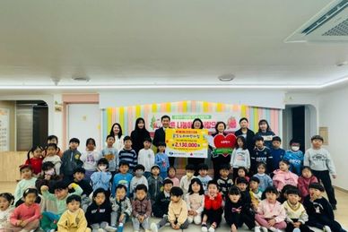(내포투데이) 천안시는 꿈빛누리어린이집이 ‘우리아이 수호천사 되어주기’ 모금 캠페인에 동참했다고 15일 밝혔다. 이날 꿈빛누리어린이집 원아들은 ‘아나바다 시장놀이’를 통해 마련한 수익금 213만 원을 천안시복지재단에 전달했다. 꿈빛누리어린이집에서 열린 전달식에는 아동, 교사, 학부모운영위원회, 천안시 및 복지재단 관계자 등 90여 명이 참석했다. 후원금은 원아들과 학부모가 함께 참여한 ‘아나바다 시장놀이’ 활동을 통해 조성된 것으로, 나눔의 의미를 자연스럽게 배우는 교육적 취지를 담고 있다. 후원금은 천안시복지재단을 통해 경제적·사회적으로 어려움을 겪는 관내 아동들을 지원하는 데 사용될 예정이다. 장혜진 꿈빛누리어린이집 원장은 “시장놀이를 통해 아이들이 경제 개념도 배우고, 직접 마련한 수익금을 기부할 수 있어 더욱 뜻깊었다”라며 “앞으로도 따뜻한 마음을 나누는 아이들로 성장하길 바란다”고 전했다. 석재옥 아동보육과장은 “이번 기부활동이 아이들에게 나눔문화의 가치를 체험하는 소중한 경험이 되길 바란다”며 “후원금은 천안시복지재단을 통해 취약계층 아동들에게 희망을 전할 수