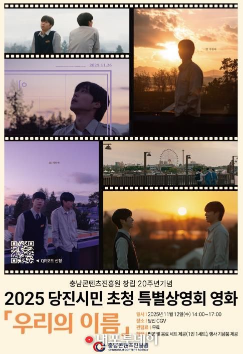 (내포투데이) 충남콘텐츠진흥원이 창립 20주년을 맞아, 오는 11월 12일 오후 2시 당진 CGV에서 특별상영회를 개최한다.