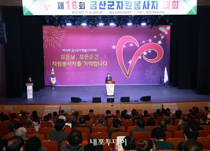 (내포투데이) 사단법인금산군자원봉사센터는 지난 8일 금산다락원 생명의 집 대공연장에서 자원봉사자와 관계자 500여 명이 참석한 가운데 자원봉사자의 날(12월 5일)을 기념하고 자원봉사자들을 격려하기 위해 제16회 금산군자원봉사자대회를 개최했다.