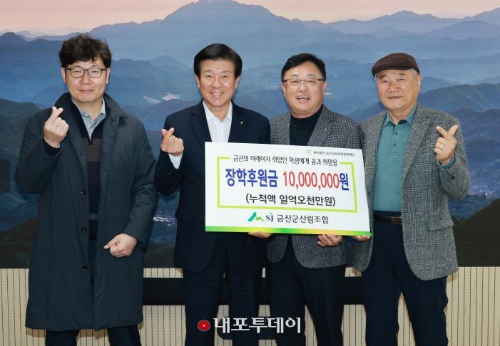 (내포투데이) 금산군산림조합(조합장 곽병천)은 지난 9일 금산군청에서 금산교육사랑장학재단(이사장 조신영)에 장학금 1000만 원을 기탁했다.