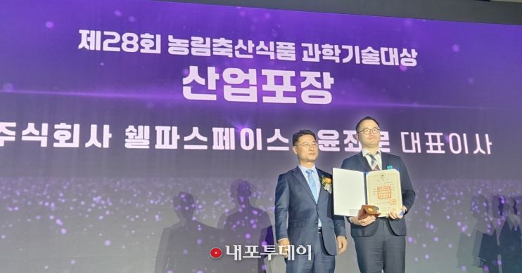 기술연구형 대전팜 운영사 ㈜쉘파스페이스는 10일 양재aT센터에서‘제28회 농림축산식품 과학기술대상’산업포장을 수상했다.