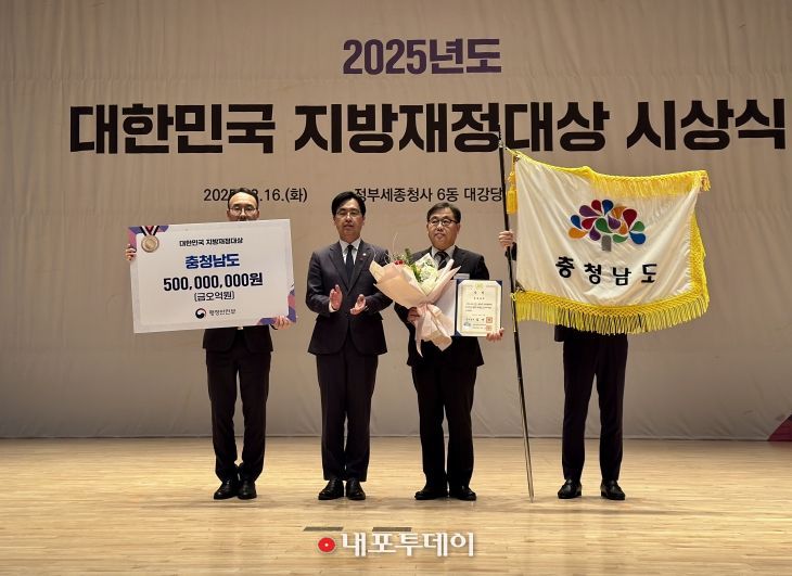 (내포투데이) 충남도는 16일 정부세종청사 대강당에서 열린 ‘2025년 대한민국 지방재정대상 시상식’에서 국무총리상을 받아 재정 인센티브 5억 원을 확보했다.