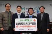 (내포투데이) 홍산성결교회(담임목사 김병준)는 지역 내 어려운 이웃을 돕기 위해 325만여 원의 성금을 부여군에 기탁했다고 6일 밝혔다. 이번 성금은 홍산성결교회 성도들이 연말을 맞아 자발적으로 참여해 모금한 것으로, 경제적 어려움으로 도움의 손길이 필요한 지역 내 취약계층을 지원하고 더불어 살아가는 지역사회를 만들기 위해 마련됐다. 홍산성결교회는 평소에도 지역 주민을 위한 다양한 봉사와 나눔 활동을 꾸준히 이어오며, 교회의 사회적 책임을 실천해 오고 있다. 특히 독거노인과 저소득 가구, 복지 사각지대에 놓인 이웃들을 향한 관심과 지원을 통해 지역사회에 온기를 전하고 있다. 김병준 담임목사는 “작은 정성이지만 어려운 이웃들에게 도움이 되기를 바라는 마음으로 성도들과 함께 뜻을 모았다.”라며, “앞으로도 지역사회와 함께 호흡하며 나눔과 섬김을 실천하는 교회가 되도록 최선을 다하겠다.”라고 말했다. 박정현 부여군수는 “지역사회를 위해 소중한 나눔을 실천해 주신 홍산성결교회에 깊이 감사드린다.”라며, “기탁해 주신 성금은 도움이 필요한 이웃들에게 정성껏 전달하겠다.”라고 말했다.